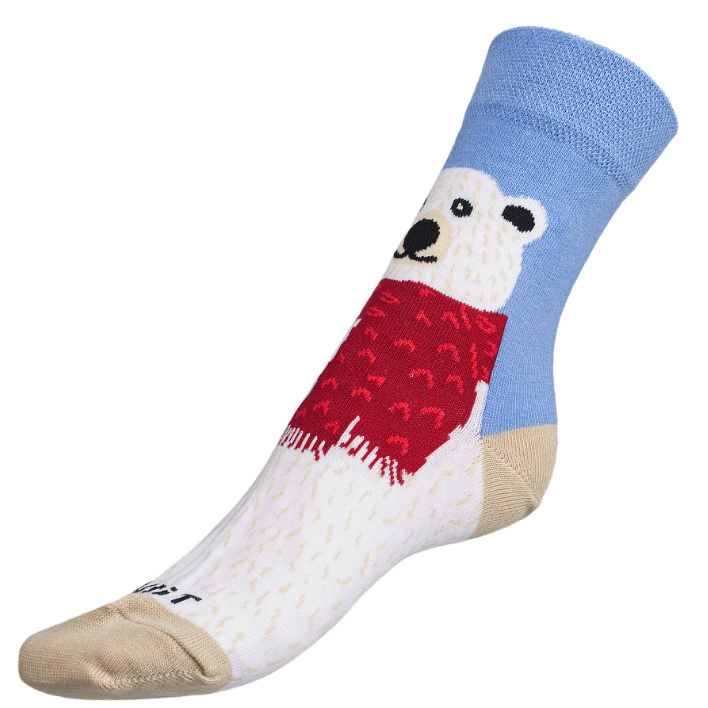 Dámské a pánské ponožky s ledním medvědem. Originalita, pohodlí, styl. Kousek s nápaditým vzorem, který stojí za oživení dámského a pánského outfitu. Jsou vyrobeny z jemné bavlny a díky přidanému elastanu se skvěle přizpůsobí tvaru nohy. Ponožky mají komfortní lemy, které se nezařezávají. Špička a pata ponožek jsou zesílené.
