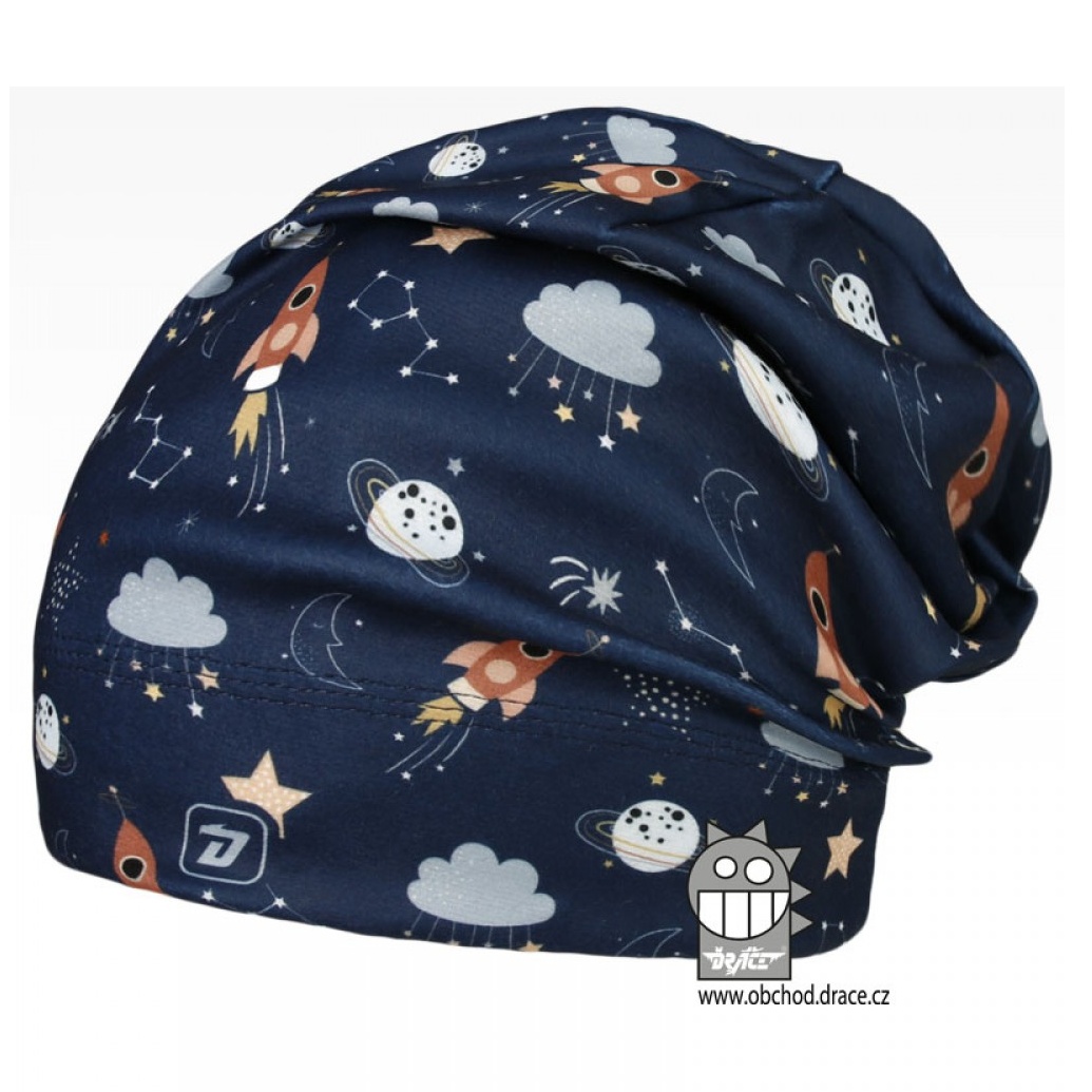 Dětská flísová čepice vhodná pro období jaro, podzim a začátek a konec zimy. Čepice je potištěná obrázky s motivem vesmíru a ve stejném designu je možné pořídit také nákrčník. Flísové čepice Dráče jsou vyrobené z polar fleecu.