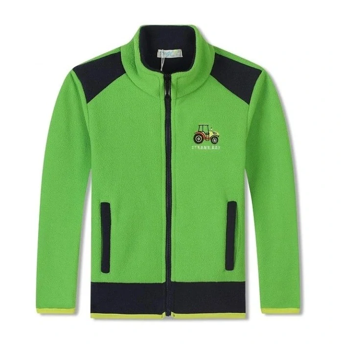Chlapecká fleecová mikina od firmy Kugo je vhodná pro podzimní a jarní radovánky venku, na sport nebo do školky a školy. Mikina má zapínání na zip až ke krku, v předu jsou dvě kapsy se zapínáním na zip, zipy jsou zároveň reflexním prvkem.