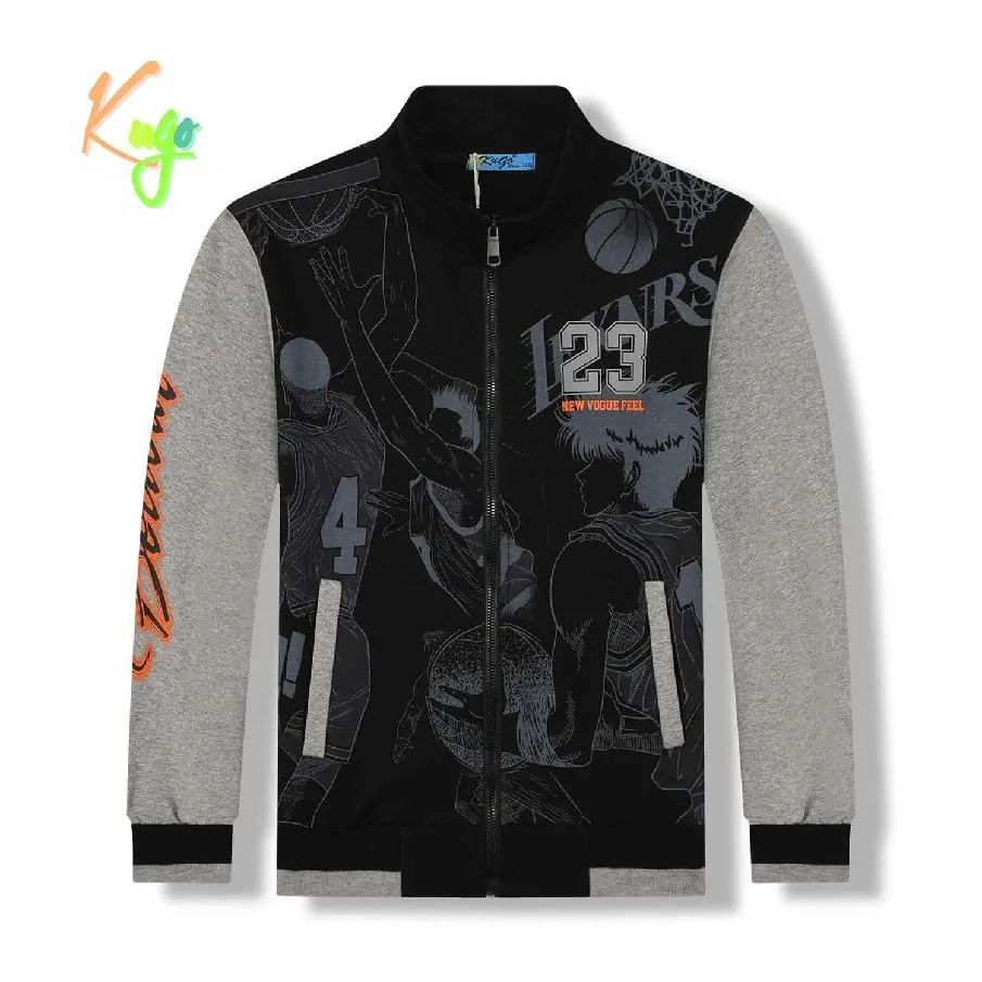 Oblíbená bavlněná chlapecká mikina značky Kugo s obrázky nápisy vpředu, zadní díl je jednobarevný. Mikina Kugo JM8506 má zapínání na zip, stojáček, rukávy a spodní díl mikiny jsou ukončené lemem.