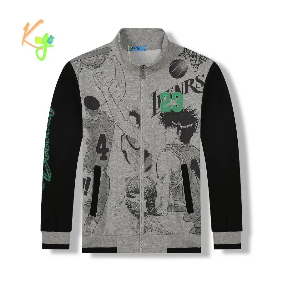 Oblíbená bavlněná chlapecká mikina značky Kugo s obrázky nápisy vpředu, zadní díl je jednobarevný. Mikina Kugo JM8506 má zapínání na zip, stojáček, rukávy a spodní díl mikiny jsou ukončené lemem.