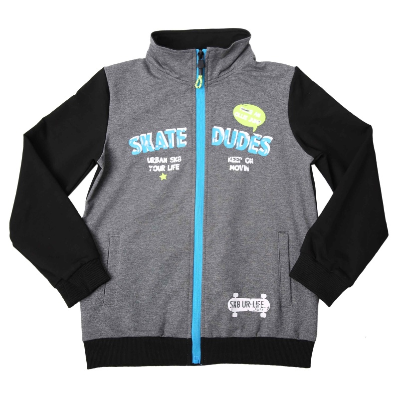 Bavlněná chlapecká mikina Wolf M2257 v moderním a cool provedení. Mikina pro kluky je vyrobena z příjemného materiálu, který nežmolkuje, na rubu mikiny je smyčka. Zapínání na zip až ke krku. V předu dvě funkční kapsy. Přední díl mikiny je šedý, zadní díl a rukávy jsou černé. Na předním dílu jsou nápisy