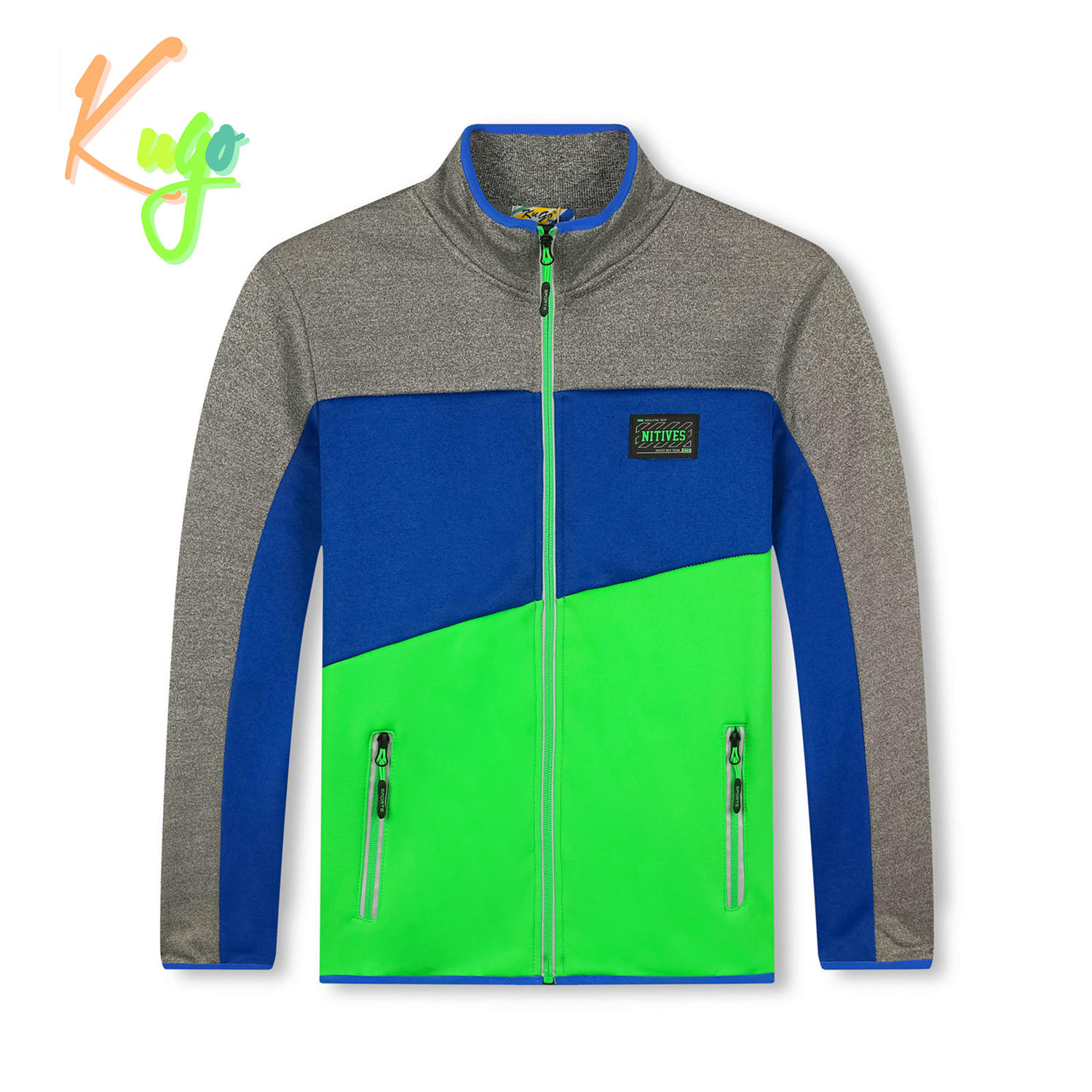 Softshellová mikina od firmy Kugo je vhodná pro podzimní a jarní radovánky venku, na sport nebo do školky a školy. Mikina má zapínání na zip až ke krku, přední díl mikiny je kratší než zadní, v předu jsou dvě kapsy se zapínáním na zip. Uvnitř mikiny je chloupek a to i v rukávech, zipy jsou zároveň reflexním prvkem.