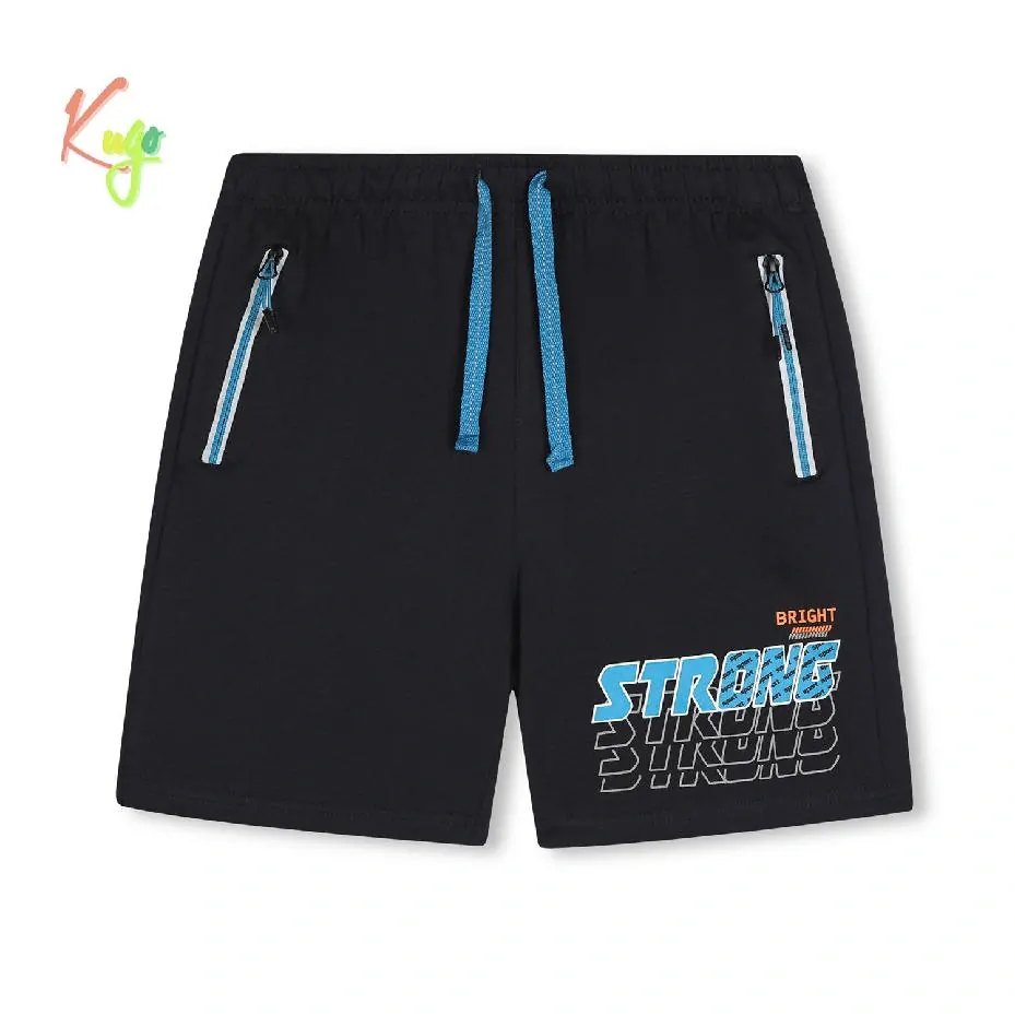 Oblíbené chlapecké kraťasy značky Kugo v pase na gumu, pas můžete stáhnout šňůrkou. Vpředu dvě kapsy na zip. Kraťasy pro kluky můžete využít na běžné nošení, tělocvik nebo na sport. Na nohavici vpředu je obrázek.