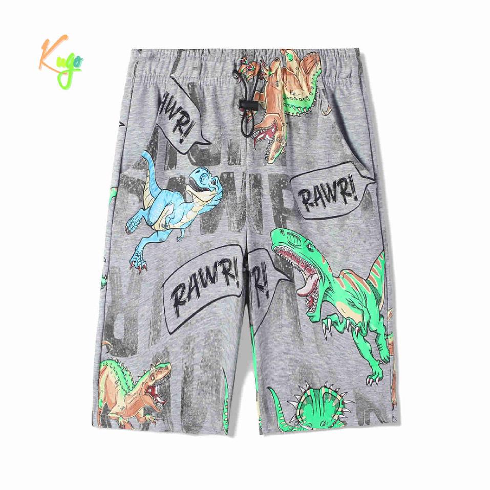 Oblíbené chlapecké kraťasy značky Kugo v pase na gumu, pas můžete stáhnout olivkou. Vpředu dvě kapsy. Kraťasy můžete využít na běžné nošení, tělocvik nebo na sport. Na kraťasech jsou obrázky dinosaurů.