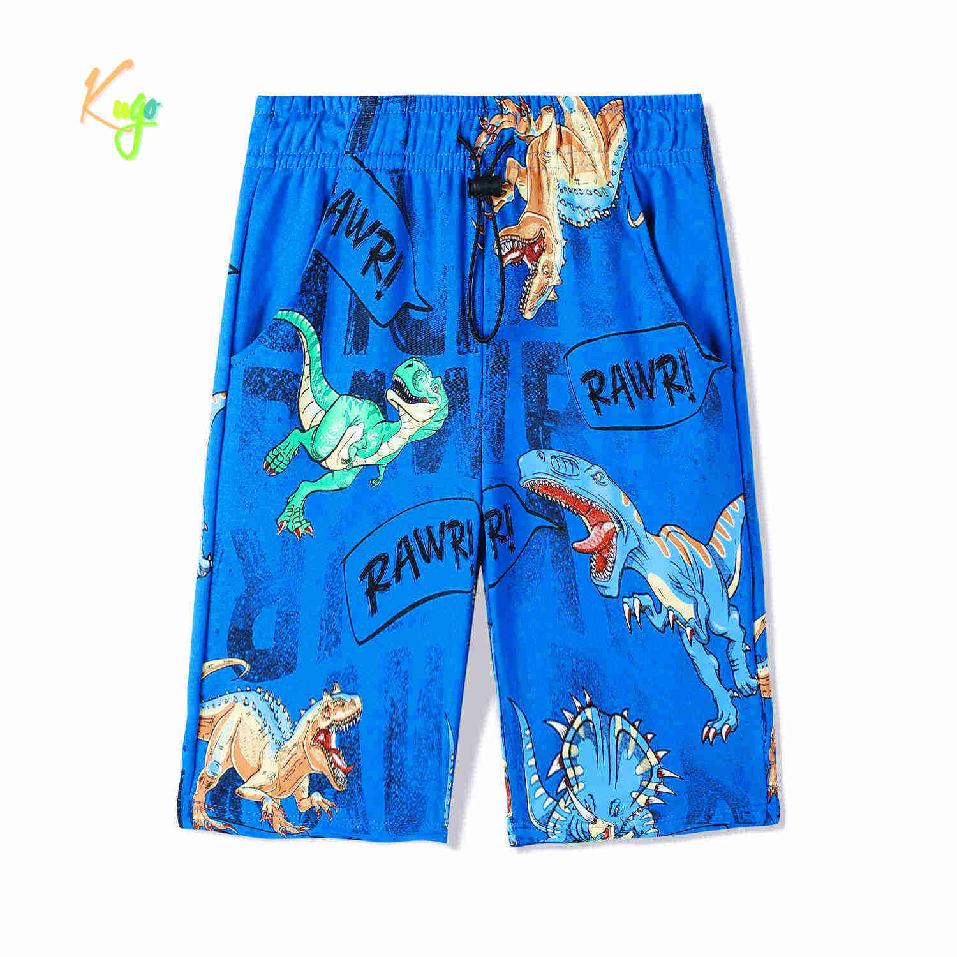 Oblíbené chlapecké kraťasy značky Kugo v pase na gumu, pas můžete stáhnout olivkou. Vpředu dvě kapsy. Kraťasy můžete využít na běžné nošení, tělocvik nebo na sport. Na kraťasech jsou obrázky dinosaurů.