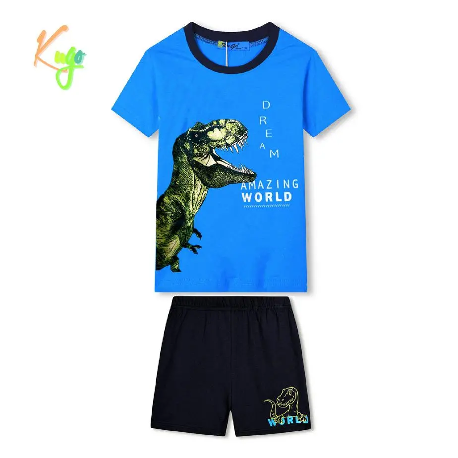 Krásné chlapecké pyžámko Kugo s dinosaurem pro teplé letní dny. Chlapecké pyžámko je vyrobené z příjemného a kvalitního materiálu. Letní komplet Kugo je možné také použít jako letní soupravu na ven nebo na tělocvik. Na tričku je potisk, kraťasy jsou jednobarevné s obrázekm na nohavici.