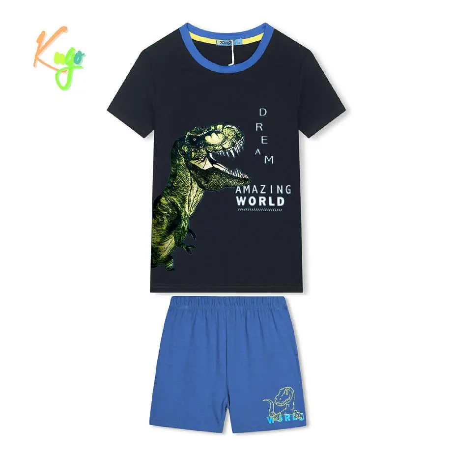 Krásné chlapecké pyžámko Kugo s dinosaurem pro teplé letní dny. Chlapecké pyžámko je vyrobené z příjemného a kvalitního materiálu. Letní komplet Kugo je možné také použít jako letní soupravu na ven nebo na tělocvik. Na tričku je potisk, kraťasy jsou jednobarevné s obrázekm na nohavici.