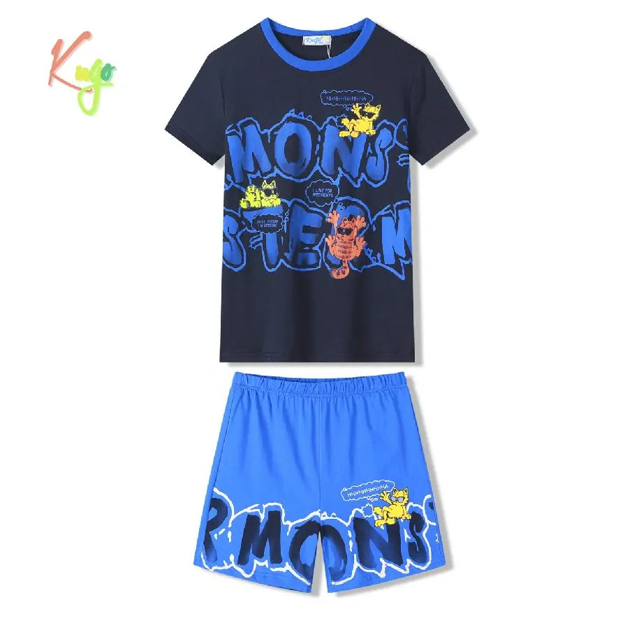 Chlapecké letní pyžamo Kugo WT7315 Velikosti: 116, 122, 128, 134, 140, 146 Krásné chlapecké pyžámko Kugo s moderními nápisy a obrázky kocourů pro tepl...