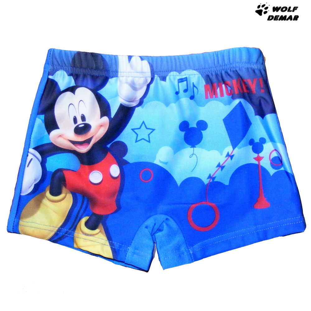 Krásné chlapecké plavky s motivem oblíbeného myšáka Mickeyho. Na předním dílu plavek je obrázek, zadní díl je jednobarevný a to světle modrý nebo tmavě modrý.