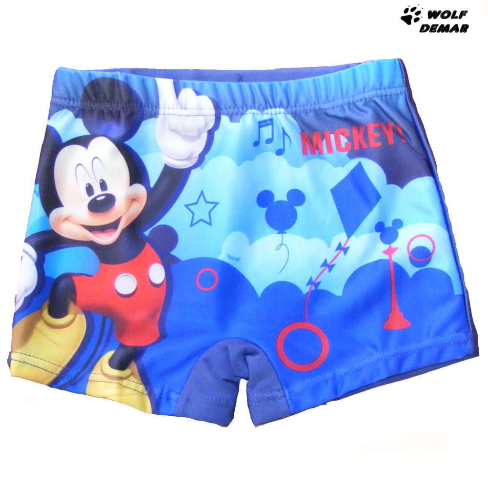 Krásné chlapecké plavky s motivem oblíbeného myšáka Mickeyho. Na předním dílu plavek je obrázek, zadní díl je jednobarevný a to světle modrý nebo tmavě modrý.