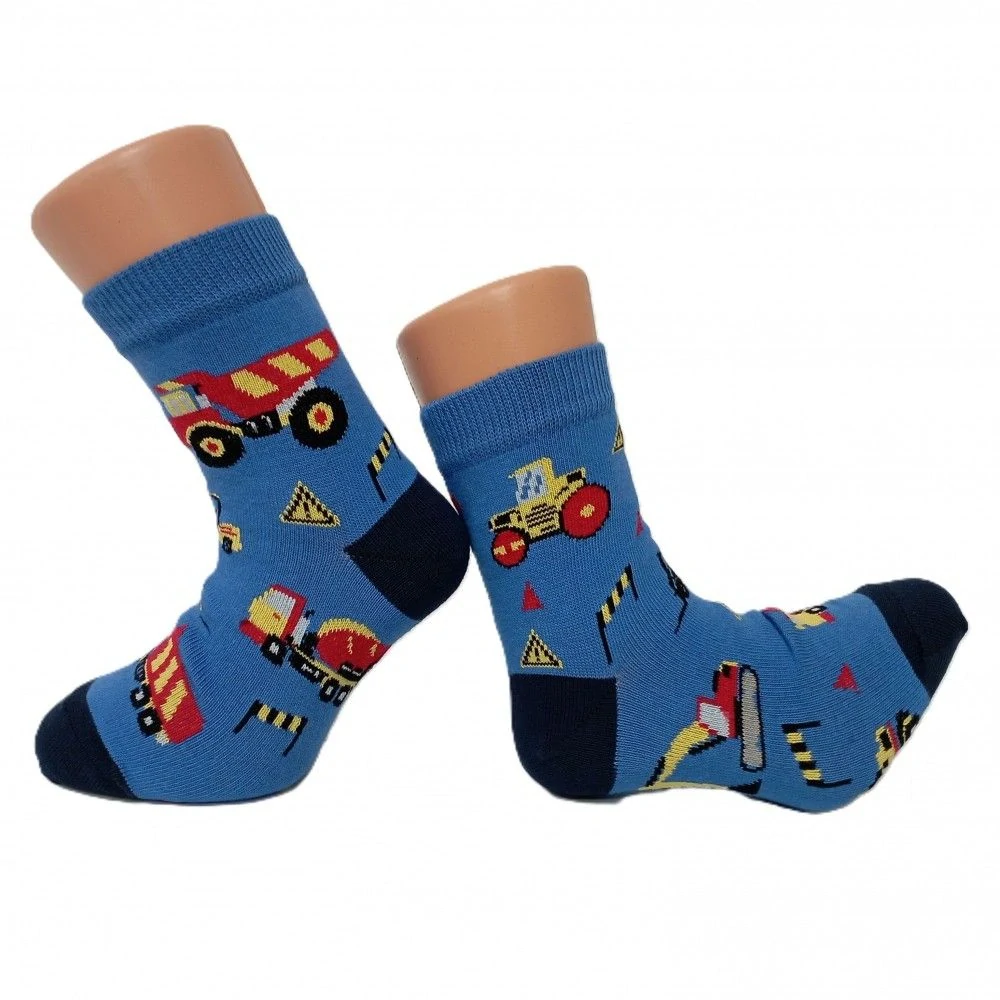 Ponožky Trepon pro malé děti s barevnými stavebními stroji jsou nejen pěkné na pohled, ale také jsou perfektně pohodlné Velice příjemné a pohodlné při nošení díky kvalitní dlouhovlákné bavlně a přidanému elastanu. Ponožky jsou prodyšné, velmi jemné a poskytují přirozené pohodlí. Paty a špice jsou zesíleny pro lepší odolnost prototi prošlapání. Extra plochý šev v oblasti prstů. Vhodné do volnočasové i sportovní obuvi.