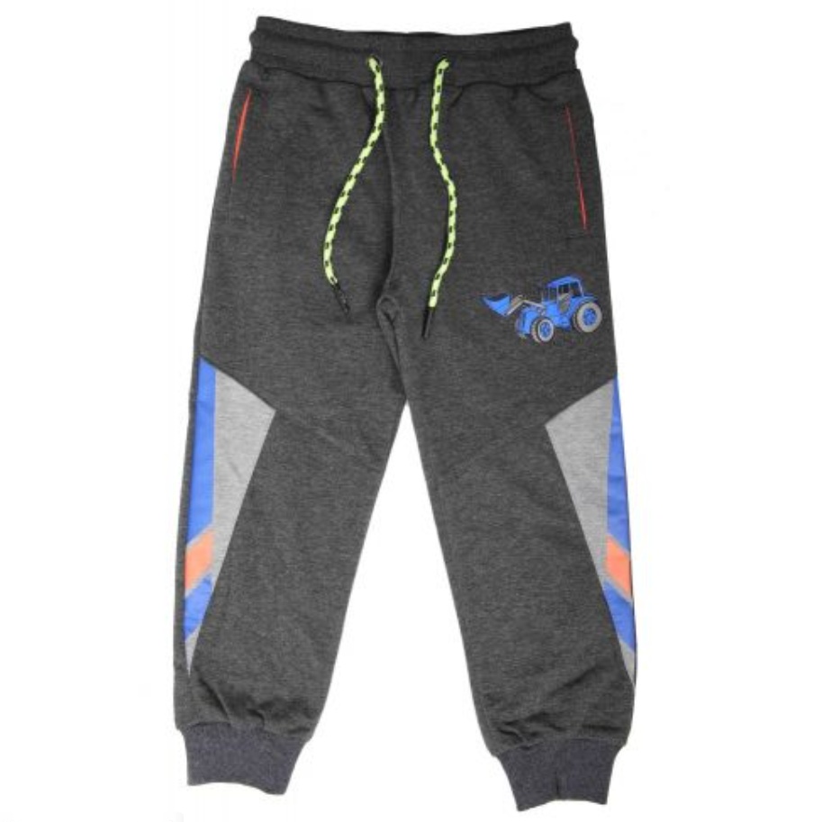 Oblíbené chlapecké tepláky Wolf s obrázkem traktora v pase na gumu, nohavice jsou ukončené do lemu. Po strannách jsou dvě funkční kapsy. V pase je šňůrka na stažení. Vnitřní strana tepláků je bez chloupku - smyčky.