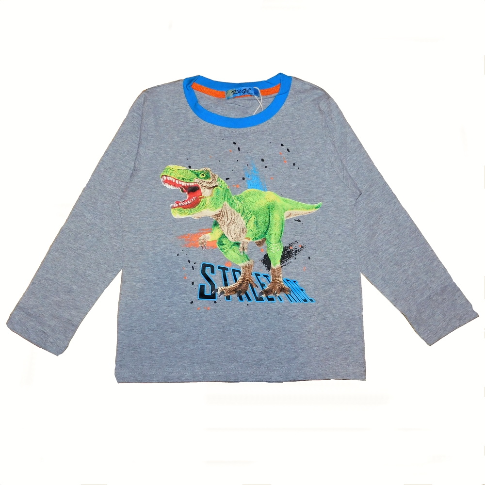 Bavlněné chlapecké tričko od firmy KUGO HC0710Q s dlouhým rukávem a obrázkem dinosaura na předním dílu. Tričko je vyrobeno z příjemného a kvalitního materiálu. Barvy jsou stálobarevné i po mnoha vypráních (máme vyzkoušené u nás doma).