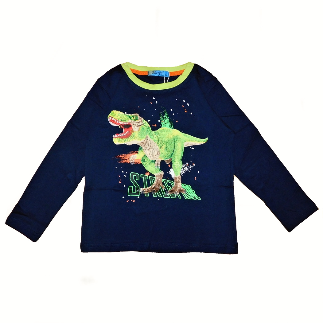 Bavlněné chlapecké tričko od firmy KUGO HC0710Q s dlouhým rukávem a obrázkem dinosaura na předním dílu. Tričko je vyrobeno z příjemného a kvalitního materiálu. Barvy jsou stálobarevné i po mnoha vypráních (máme vyzkoušené u nás doma).