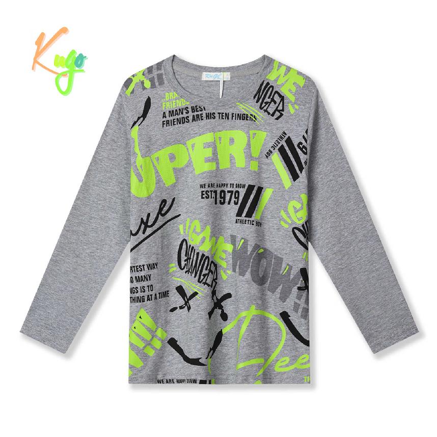 Moderní bavlněné chlapecké tričko s dlouhým rukávem značky Kugo s nápisy. Tričko je vyrobeno z kvalitního bavlněného materiálu s příměsí elastanu pro zachování tvaru při praní.