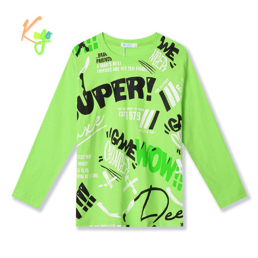 Moderní bavlněné chlapecké tričko s dlouhým rukávem značky Kugo s nápisy. Tričko je vyrobeno z kvalitního bavlněného materiálu s příměsí elastanu pro zachování tvaru při praní.