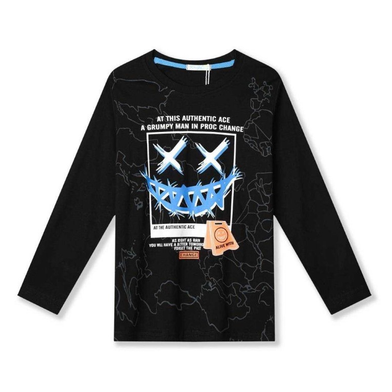 Moderní tričko pro kluky od firmy KUGO s dlouhým rukávem, na předním dílu jsou nápisy a obrázky. Tričko je vyrobeno z příjemného a kvalitního materiálu. Barvy jsou stálobarevné i po mnoha vypráních (máme vyzkoušené u nás doma).
