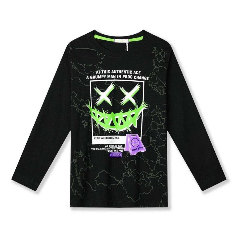 Moderní tričko pro kluky od firmy KUGO s dlouhým rukávem, na předním dílu jsou nápisy a obrázky. Tričko je vyrobeno z příjemného a kvalitního materiálu. Barvy jsou stálobarevné i po mnoha vypráních (máme vyzkoušené u nás doma).
