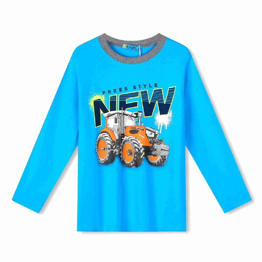 Bavlněné chlapecké tričko s dlouhým rukávem od firmy KUGO MC3789 v tyrkysové barvě. Na předním dílu trička je obrázek s traktorem. Tričko je vyrobeno z příjemného a kvalitního materiálu. Barvy jsou stálobarevné i po mnoha vypráních ( máme vyzkoušené u nás doma ).