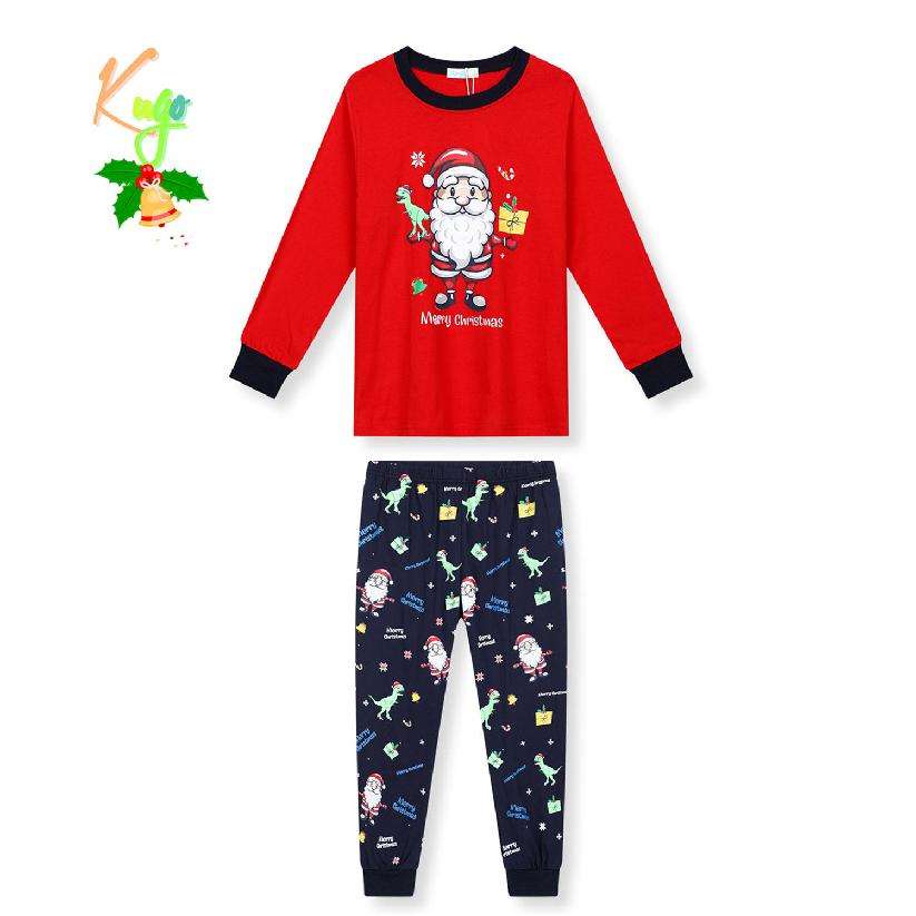 Vánoční chlapecké pyžamo ze 100% bavlny od fi KUGO. Rukávy a nohavice pyžama jsou zakončeny do lemu. Na triku obrázek Santa Clause, kalhoty jsou jednobarevné s potiskem malých dinosaurů a dárečků. Pyžamo KUGO MP3836 je vyrobeno z příjemného a kvalitního bavlněného materiálu.