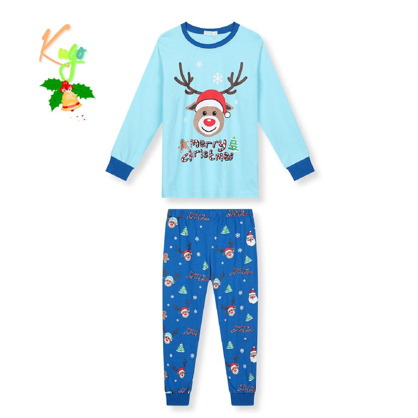 Chlapecké junior pyžamo značky Kugo s vánočním motivem vyrobené ze 100% bavlny. Rukávy a nohavice pyžama jsou zakončeny do lemu. Na triku je obrázek, kalhoty jsou jednobarevné s potiskem. Chlapecké vánoční pyžamo Kugo je vyrobeno z příjemného a kvalitního materiálu.