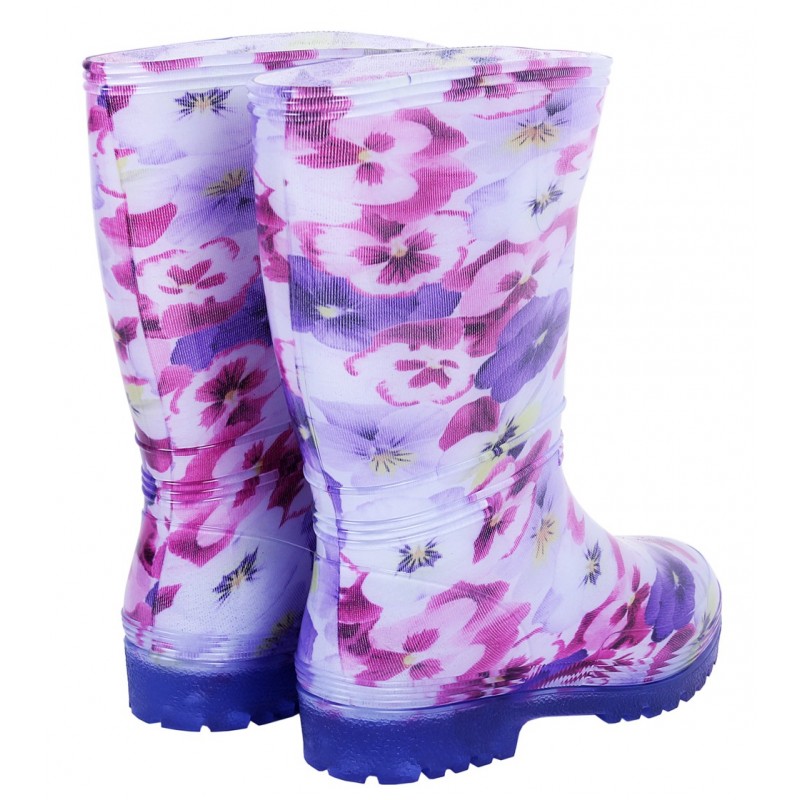 Krásné holínky, které se skvěle hodí pro práci na zahradě i na rybaření nebo houbaření s motivem fialek.