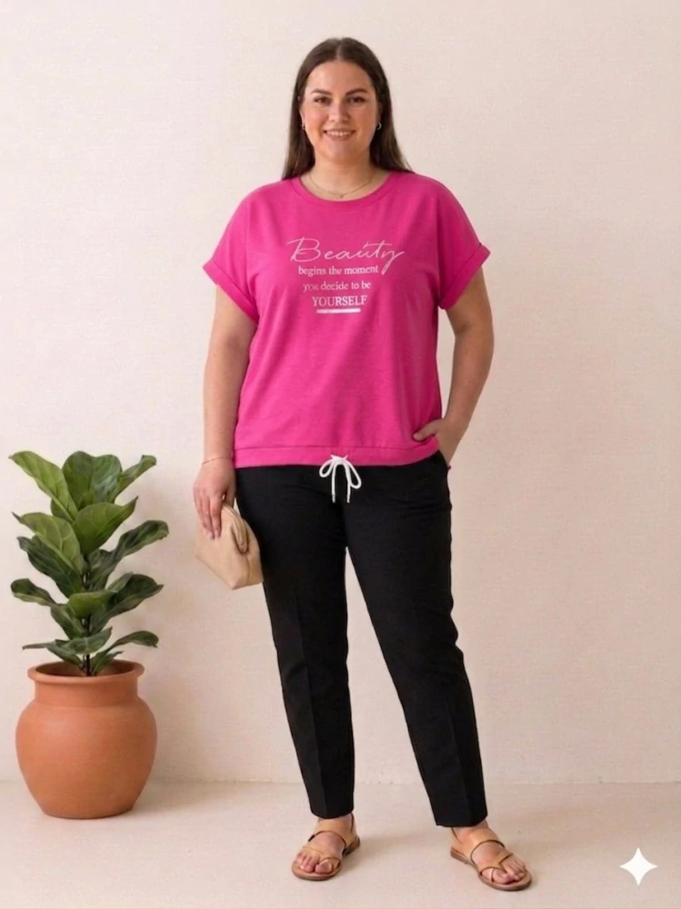 - Dámské máslové tričko se šňůrkou krátký rukáv Beauty sytě růžové