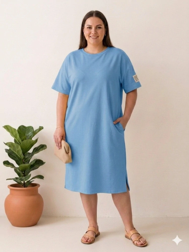 Stylové dámské šaty v jednoduchém „basic“ střihu, které si zamilujete pro jejich pohodlí i univerzální využití. Díky volnějšímu střihu krásně sedí na postavě a zároveň poskytují maximální komfort při nošení. Praktické kapsy dodávají šatům ležérní vzhled i funkčnost, kterou oceníte při každodenním nošení.