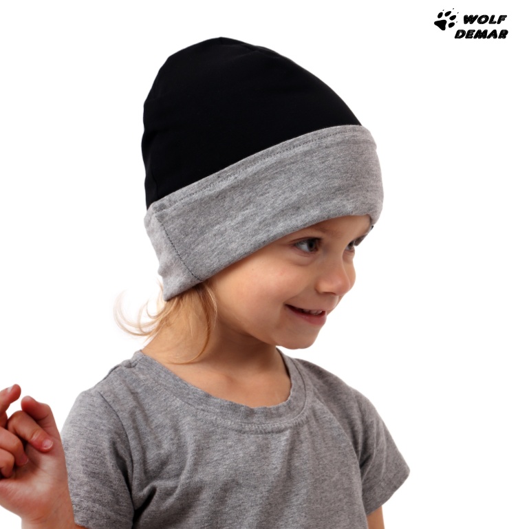 - Dětská oboustranná čepice JOŽÁNEK, černá + sv. šedý melír