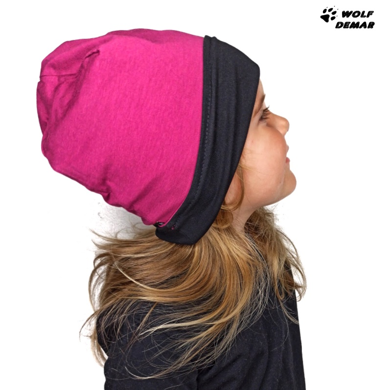 - Dětská oboustranná čepice JOŽÁNEK, černá + sytě růžová