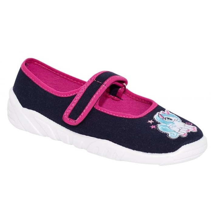 Dětská dívčí textilní obuv Bighorn GITA v tmavě modré barvě se zapínáním na suchý zip. Materiál je vysoce kvalitní bavlna. Lehká pružná podešev vyrobená z PVC. Stélka je vyrobena z přírodní kůže a pružné pěny s aktivním uhlím. Kůže absorbuje přebytečnou vlhkost a aktivní uhlí nepříjemné pachy, což chodidlu dává pocit svěžesti. Na vyztužené patě obuvi je bezpečnostní reflexní pásek pro dobrou viditelnost dítěte ve tmě. Teniska je velice pohodlná a lehká. Obuv je vyrobena v EU.