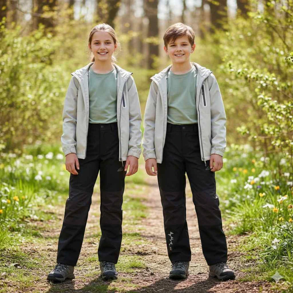 Oblíbené dětské softshellové kalhoty Kugo bez zateplení v barvách unisex. Softshellové kalhoty jsou vyrobené z vodoodpudivého prodyšného materiálu odolného vůči povětrnostním vlivům. Kalhoty mají v pase gumu se šňůrkou. Na konci nohavic je šusťáková zábrana proti sněhu / vodě, která je stažena do gumičky pro přetažení přes boty. V předu jsou dvě funkční kapsy se zapínáním na zip, olemované reflexním prvkem.