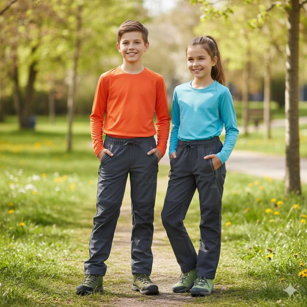 Oblíbené dětské softshellové kalhoty Kugo bez zateplení v barvách unisex. Softshellové kalhoty jsou vyrobené z vodoodpudivého prodyšného materiálu odolného vůči povětrnostním vlivům. Kalhoty mají v pase gumu se šňůrkou. Na konci nohavic je šusťáková zábrana proti sněhu / vodě, která je stažena do gumičky pro přetažení přes boty. V předu jsou dvě funkční kapsy se zapínáním na zip, olemované reflexním prvkem.