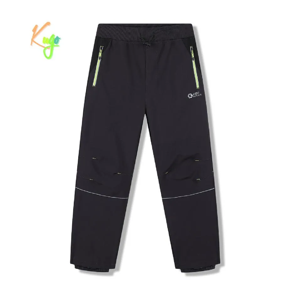 Oblíbené dětské nezateplené softshellové kalhoty Kugo pro kluky i holky. Softshellky jsou vyrobené z vodoodpudivého prodyšného materiálu odolného vůči povětrnostním vlivům. Kalhoty mají v pase gumu se šňůrkou. Na konci nohavic je šusťáková zábrana proti sněhu, která je stažena do gumičky pro přetažení přes boty. V předu jsou dvě funkční kapsy se zapínáním na zip.