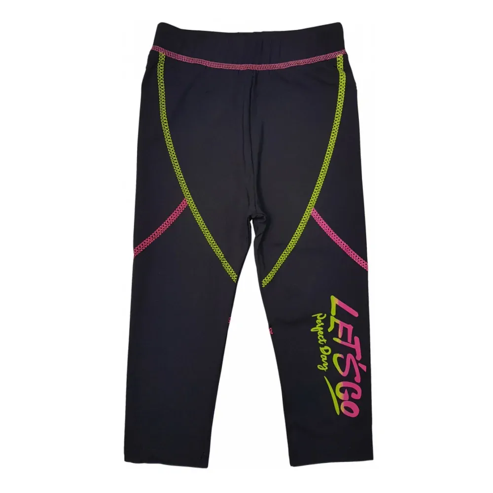 Krásné moderní a stylové dívčí 3/4 legíny Kugo vhodné na sport nebo tělocvik. Legíny jsou vyrobeny z příjemného materiálu, rychleschnoucího materiálu.