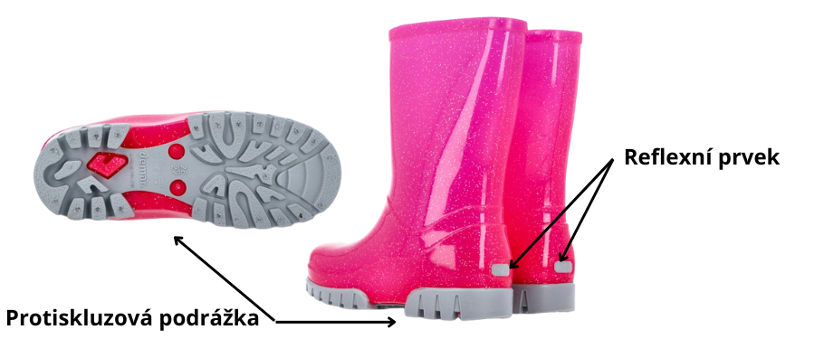 Za šera a ve špatné viditelnosti přijdou vhod reflexní prvky, které jsou vzahu na patě, takže dítko bude vidět.