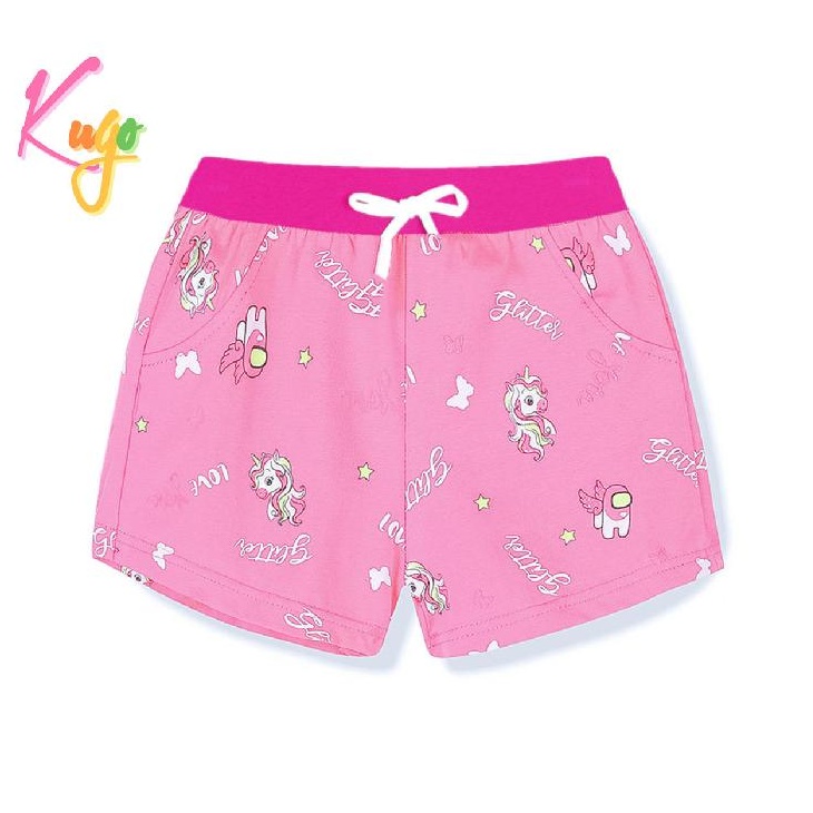 Dívčí bavlněné kraťasy Kugo v pase na širokou gumu a obrázky. Kraťasy jsou vyrobené z příjemného bavlněného materiálu vhodného na tělocvik nebo letní teplé dny.