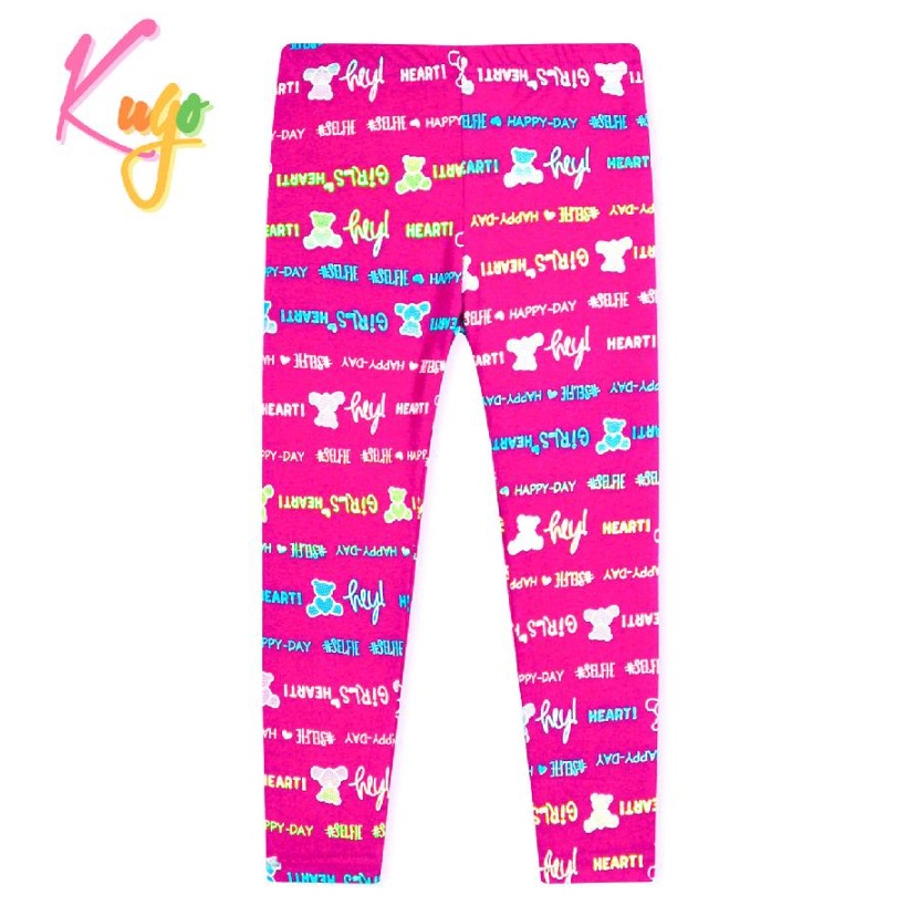 Krásné dívčí dlouhé legíny Kugo SL0390 s obrázky a nápisy na nohavicích. Legíny Kugo jsou vyrobené z příjemného a kvalitního materiálu. Legíny jsou vhodné na cvičení, místo punčocháčů nebo na běžné nošení.