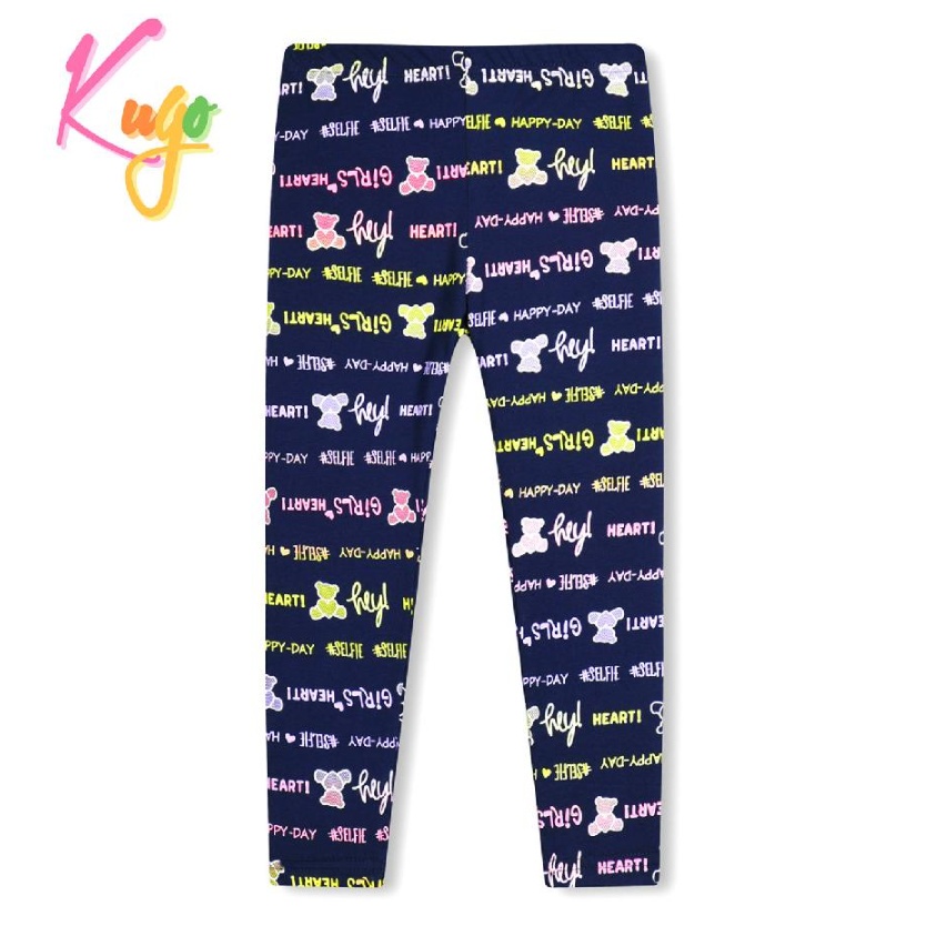 Krásné dívčí dlouhé legíny Kugo SL0390 s obrázky a nápisy na nohavicích. Legíny Kugo jsou vyrobené z příjemného a kvalitního materiálu. Legíny jsou vhodné na cvičení, místo punčocháčů nebo na běžné nošení.