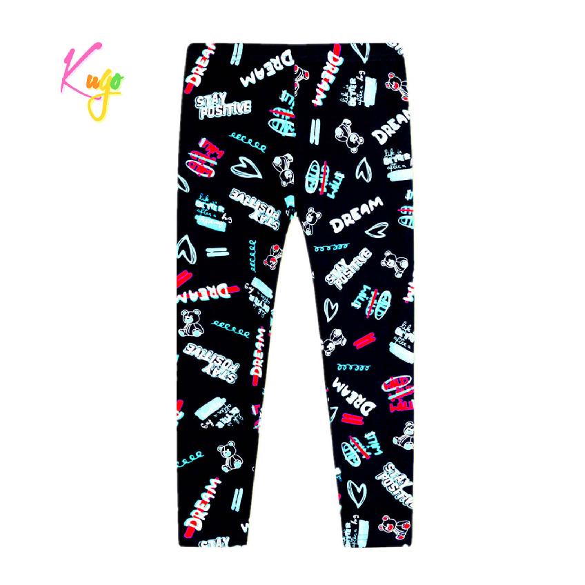 Krásné dívčí dlouhé legíny Kugo SL0399 s obrázky a nápisy na nohavicích. Legíny Kugo jsou vyrobené z příjemného a kvalitního materiálu. Legíny jsou vhodné na cvičení, místo punčocháčů nebo na běžné nošení.