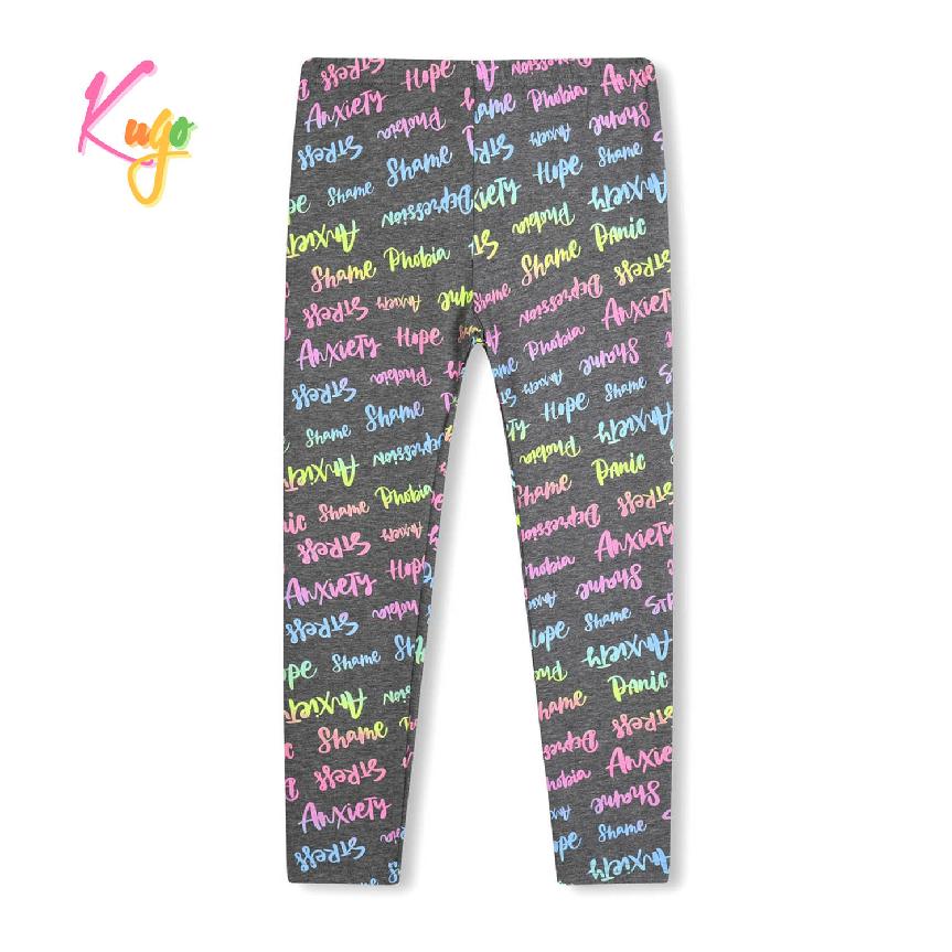 Krásné dívčí bavlněné dlouhé legíny s nápisy na nohavicích. Legíny značky Kugo jsou vyrobené z příjemného a kvalitního materiálu, v pase je všitá guma. Legíny pro dívky jsou vhodné na cvičení, místo punčocháčů nebo na běžné nošení.