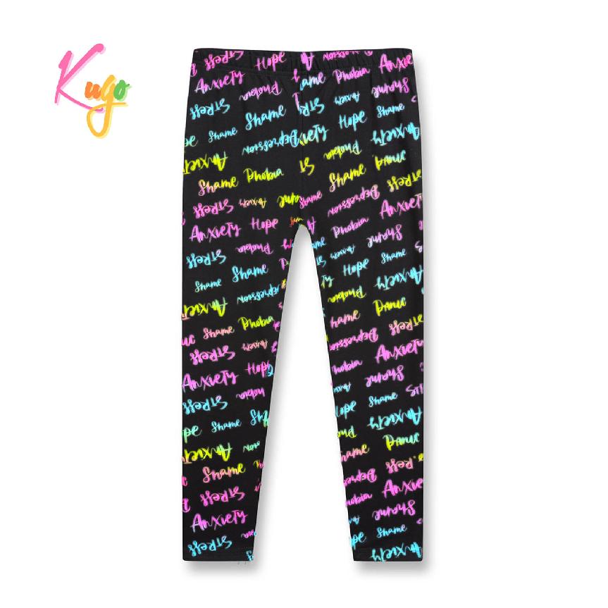 Krásné dívčí bavlněné dlouhé legíny s nápisy na nohavicích. Legíny značky Kugo jsou vyrobené z příjemného a kvalitního materiálu, v pase je všitá guma. Legíny pro dívky jsou vhodné na cvičení, místo punčocháčů nebo na běžné nošení.