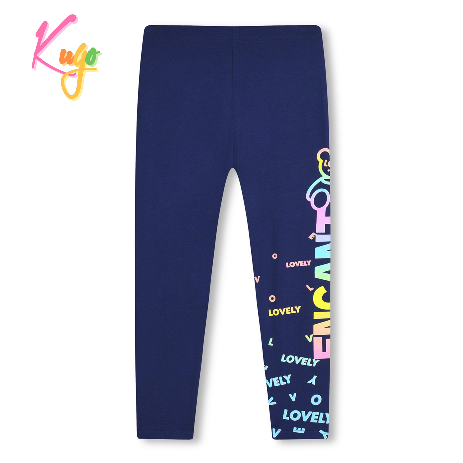 Krásné dívčí elastické legíny Kugo z kolekce podzim / zima 2022. Legíny Kugo WL0901 jsou vyrobené z příjemného a kvalitního materiálu, v pase je všitá guma, na levé nohavici je obrázek. Legíny Kugo jsou vhodné na cvičení, místo punčocháčů nebo na běžné nošení.