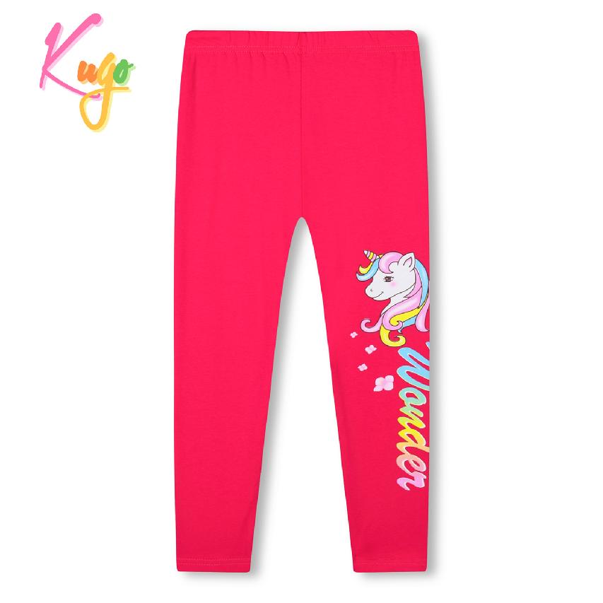 Dívčí dlouhé legíny Kugo s obrázkem na nohavici. Legíny jsou v pase do gumy, jsou jednobarevné, na jedné nohavici je nažehlený obrázek. Legíny pro dívky jsou vyrobené z kvalitního bavlněného materiálu s příměsí elastanu.