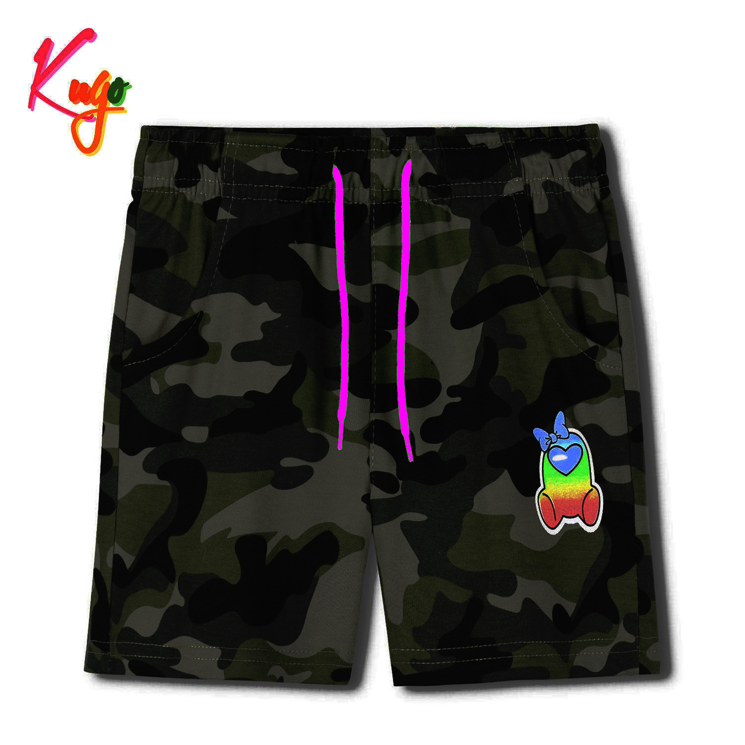 Dívčí maskáčové kraťasy KUGO TM6216, tmavý maskáč