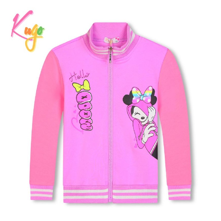 Krásná dívčí mikina od firmy Kugo s obrázkem Minnie pro malé slečny ve velikotech 98-128. Mikina je celorozepínací se stojáčkem, rukávy a spodní část mikiny je do lemu, na přední straně jsou dvě kapsy.