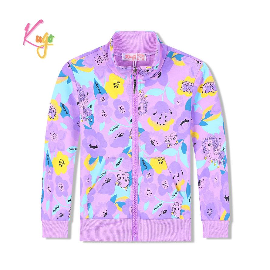 Moderní a stylová bavlněná mikina Kugo KM2365 pro holky v kojeneckých velikostech. Dívčí mikina je vyrobena z příjemného materiálu, který nežmolkuje, na rubu mikiny je smyčka. Zapínání na zip až ke krku. V předu dvě kapsy, na mikině je potisk - květiny, poníci, kočičky.
