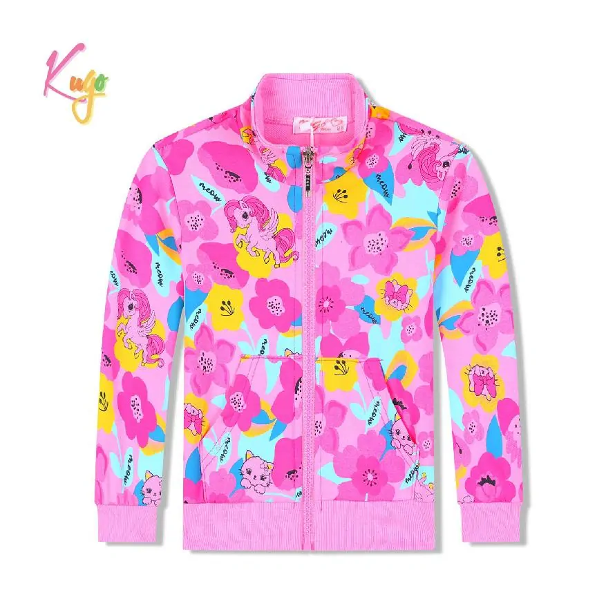 Moderní a stylová bavlněná mikina Kugo KM2365 pro holky v kojeneckých velikostech. Dívčí mikina je vyrobena z příjemného materiálu, který nežmolkuje, na rubu mikiny je smyčka. Zapínání na zip až ke krku. V předu dvě kapsy, na mikině je potisk - květiny, poníci, kočičky.