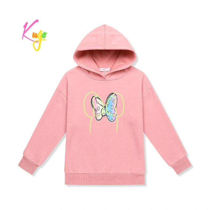 Dívčí bavlněná mikina přes hlavu s kapucí značky Kugo pro chladné počasí. Mikina je vyrobena ze silné bavlny uvnitř s chloupkem. Moderní a kvalitní mikina pro dívky s obrázkem.
